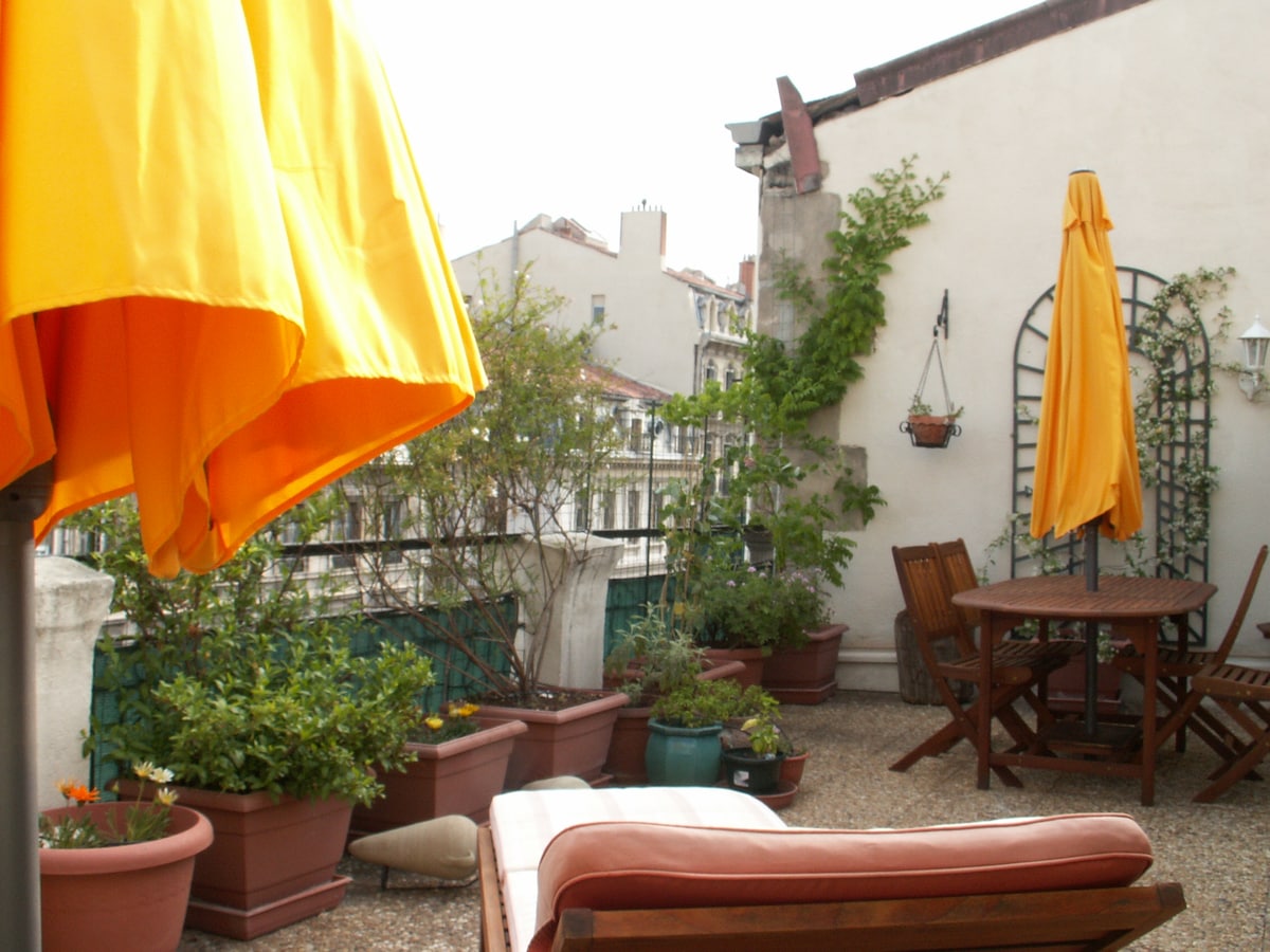 Hej, Lejligheden, jeg tilbyder, er ideel til et par eller en enkelt person, Terrassen på 24 m2 er indrettet som en lille have, der er beskyttet mod nysgerrige blikke. Ideelt beliggende i hjertet af byen, det historiske centrum og den gamle havn: bus, metro, havnebusser, færge ligger mellem 5 minutter og 8 minutter gang. Den er også meget veludstyret, og sengen er af høj kvalitet med en meget god madras Kort og gode adresser er til rådighed på stedet.