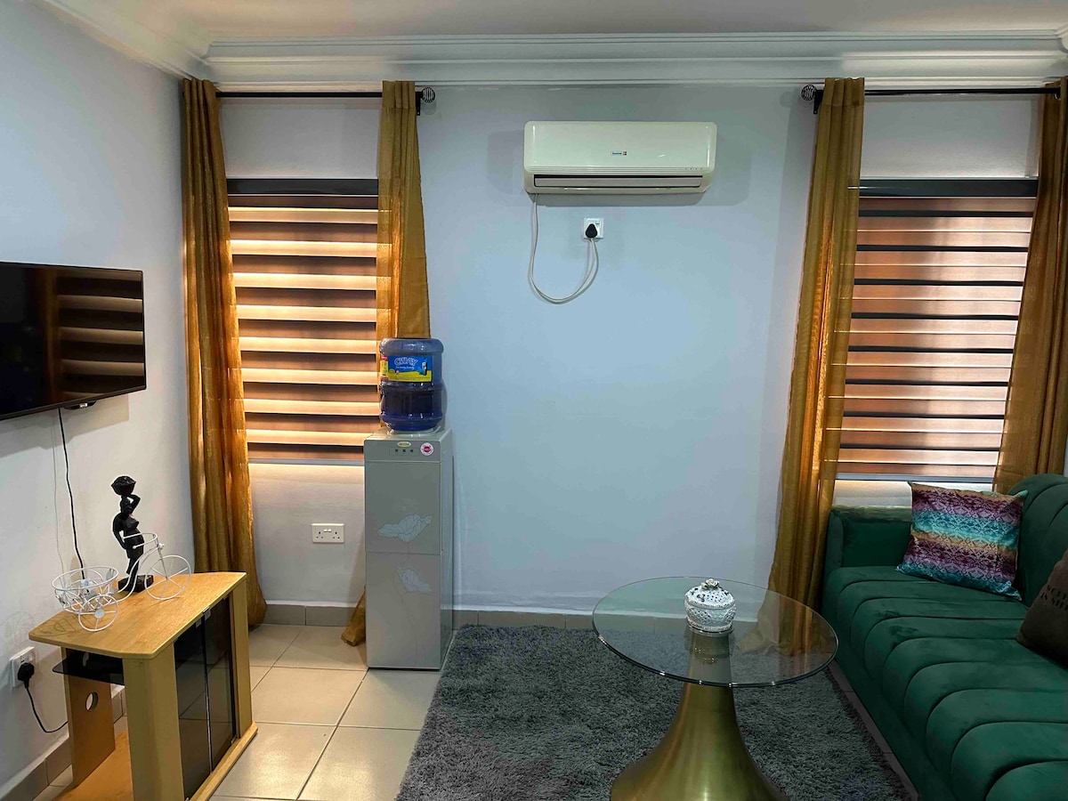 Kom og nyd lidt privatliv i denne fredfyldte, dobbeltlejlighed. Den moderne, stilfulde æstetik i dette rum er perfekt til parrejsers eller solorejsendes udflugter. Den er fuldt møbleret + beliggende i et sikkert område. Boligen har gratis, superhurtig wi-fi og rigelig parkeringsplads. Køkkenet er udstyret med moderne udstyr for at gøre det nemmere for dig. Med 24/7 elektricitet, vores smart-tv og andre luksuriøse faciliteter gør dette til et hjem væk fra hjemmet, med en drømmende hotelsuite.