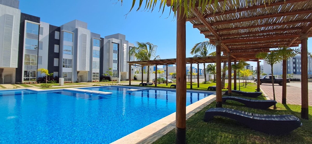 Lejligheden ligger i diamantzonen, kvarteret er nyt, meget roligt og med sikkerhed 24 timer i døgnet, kom og nyd en god hvile, sammen med din familie, 100 % garanteret. Det anbefales, at du inden ankomsten til lejligheden køber det nødvendige til dit spisekammer i Chedraui Selecto, da der i lejligheden er en lejlighed, der kun sælger det nødvendige, såsom sodavand, vand, kiks, juice osv. Strandklubben ligger 10 minutter fra lejligheden.