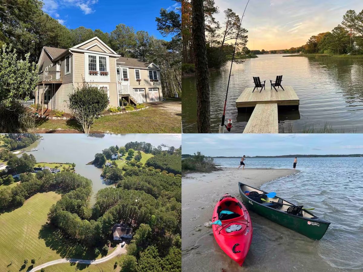 Vågn op til solopgange over bækken, mens du drikker din morgenkaffe og nyder stilheden omkring dig. 🌿 Udendørs faciliteter: Privat kaj med flere bådpladser – ideel til krabbefiskeri, fiskeri eller bare til at nyde udsigten Overdækket veranda med pejs, tv og gasgrill Udendørs bålplads til s'mores om sommeren eller østersgrill om vinteren Privat strandområde til afslapning, indsamling af skaller 🎯 Havespil for alle aldre: Hængekøje til eftermiddagslure under træerne