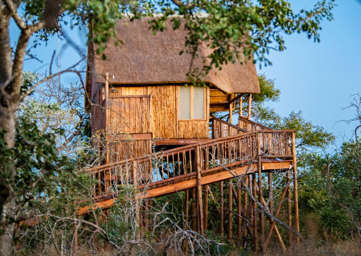 Oplev Sydafrika i vores rolige Zebra Tree House chalet med egen forplejning på et privat vildtreservat uden for Hoedspruit. Dit private træhus med stråtag har også en køkkenbygning og en rummelig boma med braai. Se en spektakulær solnedgang over bjergene, mens dyrelivet og bushveld omgiver dig. Vi specialiserer os i afslappende, private ophold med kun dig, dyrelivet og naturen. We are close to Kruger Orpen Gate and boarder private big 5 reserves.