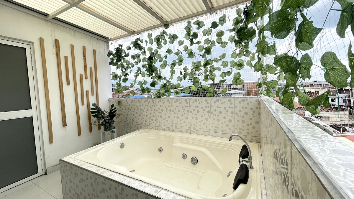 Oplev Cali og Valle del Cauca fra Rincón del Cielo, en komfortabel turistlejlighed med god beliggenhed i det rolige kvarter Prados del Norte. Designet til rejsende, der søger komfort, bekvemmelighed og en perfekt base til at udforske den kulturelle og naturlige rigdom i denne smukke region i Colombia. 5 minutter fra Cali Bus Terminal, MIO Prados del Norte Station og Chipichape. 10 minutter fra Granada-distriktet. 20 minutter fra Alfonso Bonilla Internationale Lufthavn.