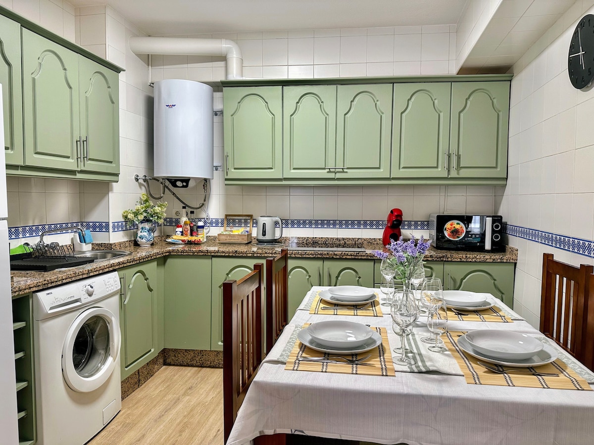 SPECIALTILBUD I PÅSKEN. Lejligheden er en bolig, der har en stue (sovesofa 150 cm), et soveværelse, hvorfra man kan se moskeen fra dobbeltsengen (150 cm), et andet soveværelse (med to enkeltsenge på 105 cm), køkken og eget badeværelse. Perfekt til 6 personer. Køkkenet er udstyret med alt det nødvendige for at gøre gæsternes ophold lettere, og består af: Køleskab, mikrobølgeovn, vaskemaskine, Nespresso, brødrister og alle slags køkkenredskaber.