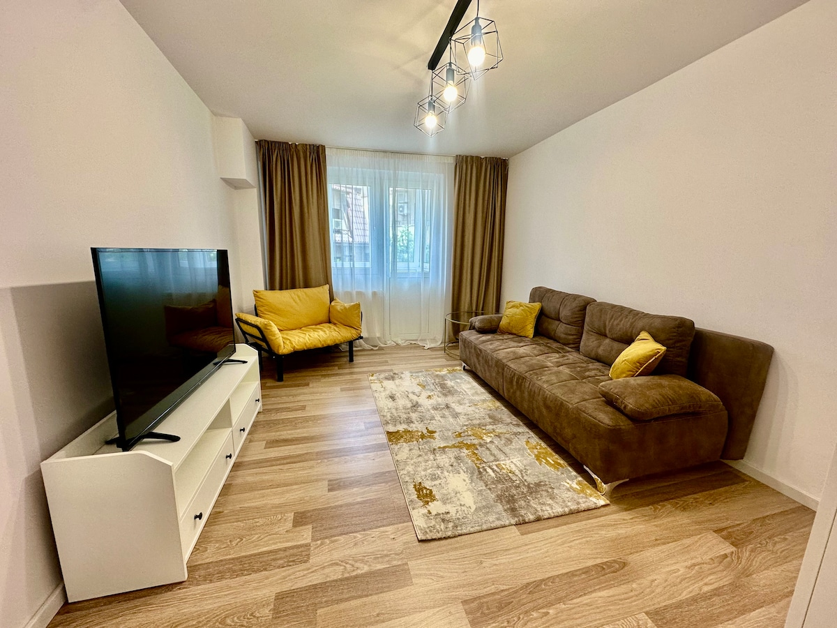 A brand new studio, fresh, clean, with a modern design and an amazing view over the city, located in an new residential complex. The studio is located at just 4 minutes walking from the 1 Decembrie 1918 subway station, next to the building we have supermarket Lidl, Auditorium Pallady and easy access to A2 highway. Also underground free parking is available during your stay. Inside the cozy studio we have smart TV+Netflix, free Wi-Fi, plus other items that are necessary to make your stay perfect.