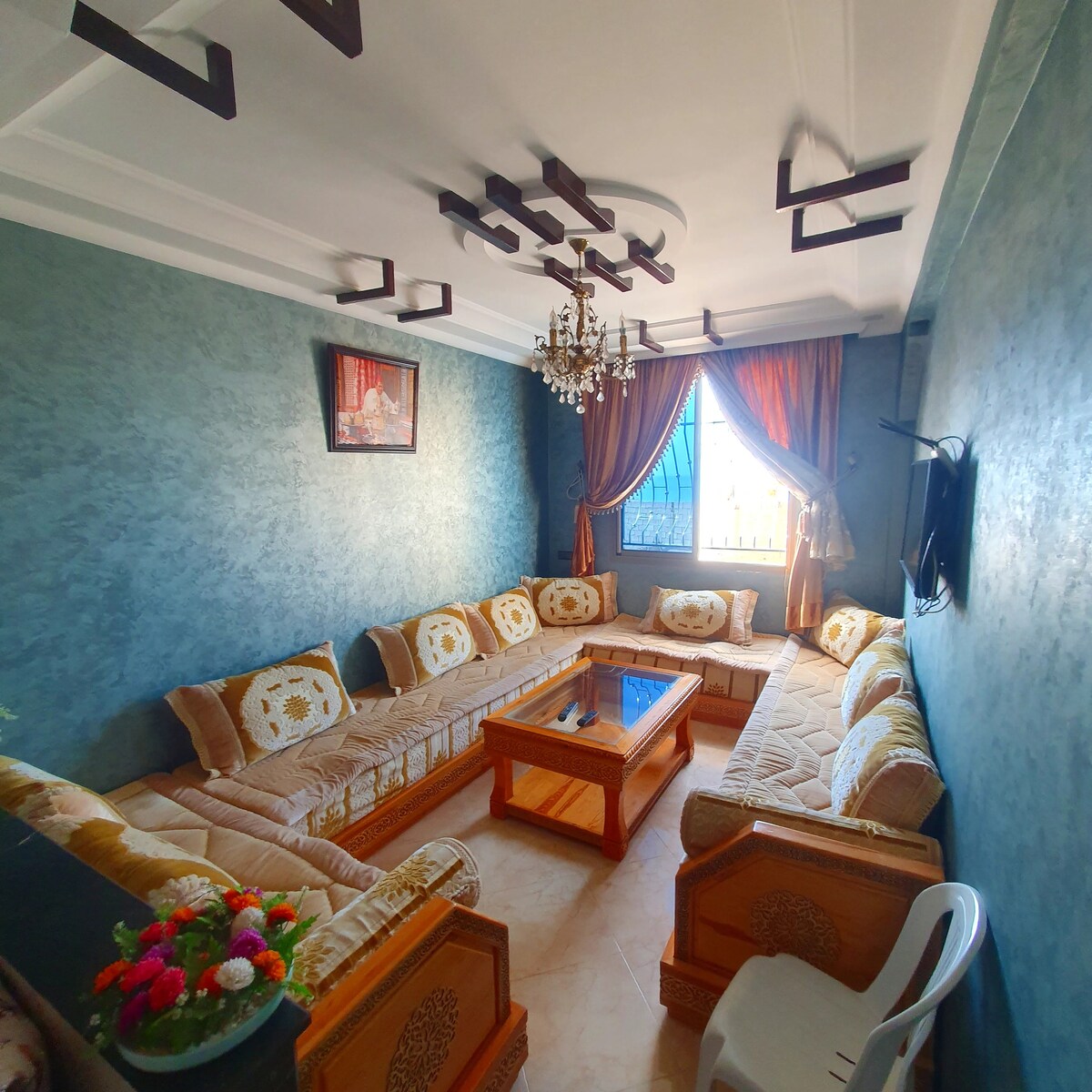 -nice appart - family appartement . - We can provide excursions to enjoy more your holiday 24/7 - we provide Moroccan foods under request -Free laundry service No extra charge - forbidden the arabic couples not married. - it's ok for the foreign couples want to discover the city - very quiet neighborhood -The apartment is on the first floor -10 minutes to the beach by taxi -Close to the road station and stations of minibus for the city -Nearby all supermarkets -no pets