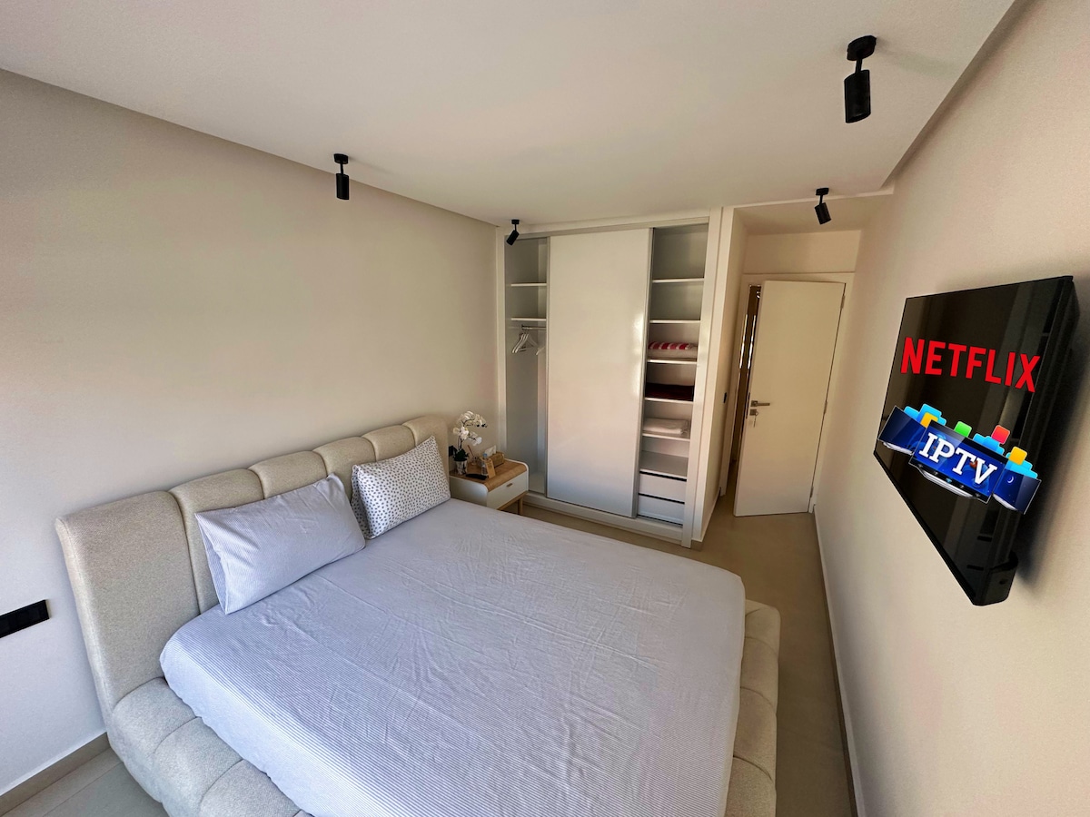 Oplev vores nye, lyse og varme studie i hjertet af Agdal i Rabat. Denne moderne bolig er ideel til solorejsende eller par og har et udstyret køkken, et elegant badeværelse, en hyggelig stue, et kontorområde, fiberoptisk WIFI og 2 smart-tv'er med Netflix + IPTV. Tæt på Mall Arribat Center, butikker, restauranter (McDonald's) og transport (sporvogn, togstation). Book hurtigt for at nyde komforten og den dynamiske by!