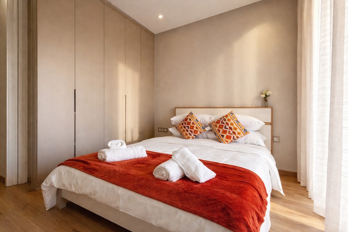 Velkommen til vores hyggelige og moderne etværelses lejlighed i Agadir! Boligen har et komfortabelt soveværelse, en lys stue, et fuldt udstyret køkken og et rent badeværelse, hvilket gør det perfekt til afslapning efter en dag med eventyr. Vi hjælper dig med at planlægge uforglemmelige oplevelser: kamelridning, Agadir Sahara solnedgang og sandboarding, Paradise Valley ture, surf, skate, quad, jetski, fiskeri og meget mere. Lufthavnstransport er tilgængelig. ⚠️ Kun registrerede gæster er tilladt, ingen eksterne besøgende.