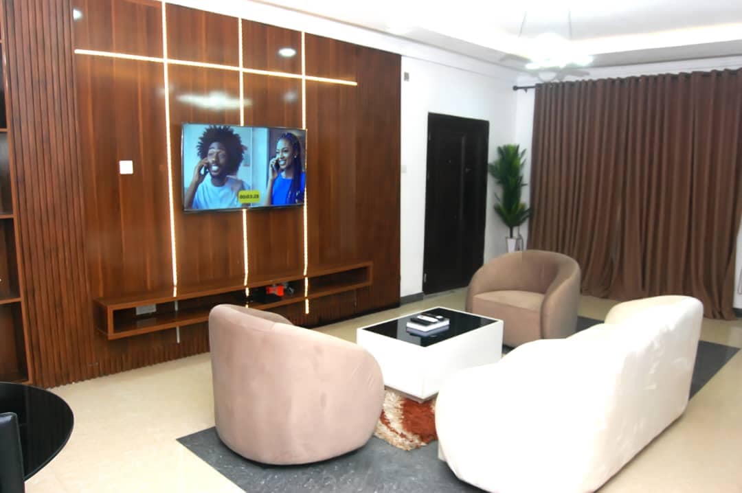 The whole group will enjoy easy access to everything from this centrally located place. Luxury home available for short let, 2 bedroom with Internet and 27/7 pwer supply with solar system. Home away from home experience. GYM, swimming pool, game house, electric car charger system, and two car packs space.