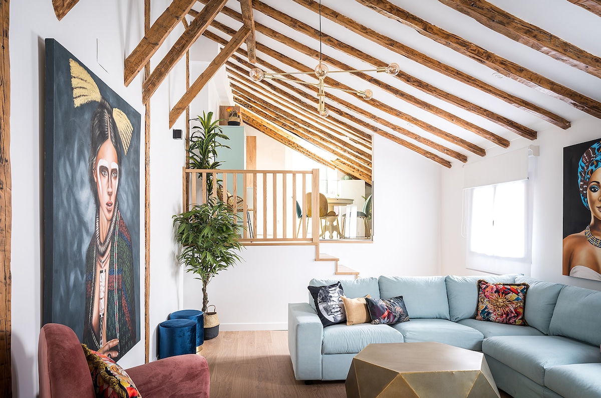 Den charmerende lejlighed Las Úrsulas er vores mest rummelige loftslejlighed, der har to etager. Vidunderlig lejlighed beliggende i det historiske centrum. Takket være den uovertrufne beliggenhed, vil du kunne nyde et vidunderligt besøg i Alcalá de Henares uden behov for transport. Design og indretning af Las Úrsulas vil gøre dit ophold til en vidunderlig oplevelse.