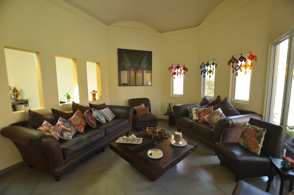 The lower garden suite is on the first floor and comes with a queen sized bed, living room, dining area, full kitchen, study desk, wardrobe, security safe, Smart TV, wifi, and an en-suite bathroom with walk-in shower. The room is Mexican in design and has views of the backyard garden. No smoking 🚭