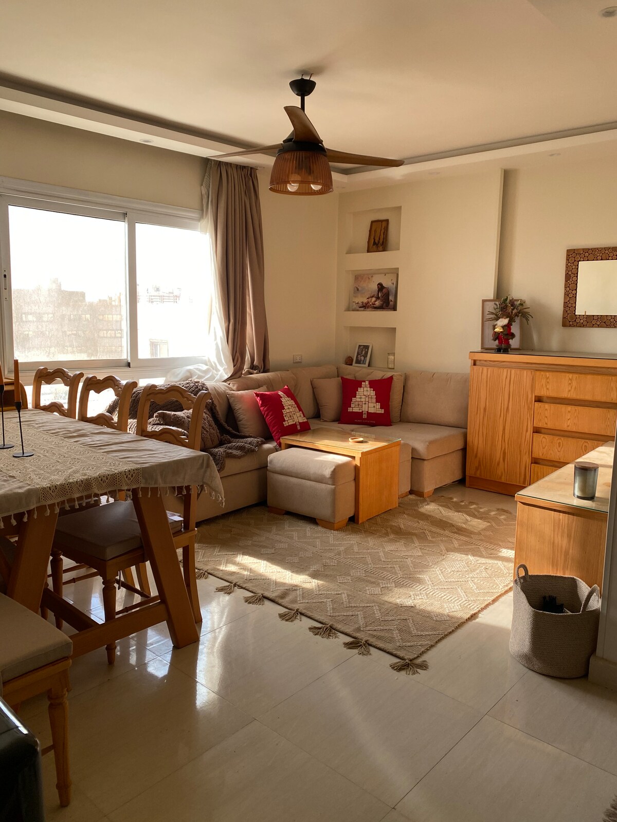 En beboelseslejlighed i nærheden af det arkæologiske område Giza. Pyramider. Museum. Pharaony Village. Store indkøbscentre. Indkøbscenter i Egypten. Fritidsbyen Dreamland... Du kan nyde næsten alle de monumentale og turistede steder uden påmindelsesomkostninger sammenlignet med hoteller. Alle tjenester er tilgængelige. Egnet til familier og enkeltpersoner og kan være vært for enkeltpersoner eller familier. Et sted som at være hjemme.