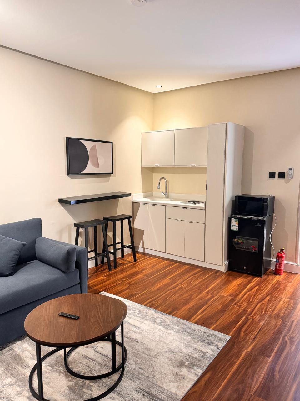 مرحبًا بكم في استوديونا العصري، المكان المثالي للراحة والإبداع. يتميز الاستوديو بتصميمه العصري الأنيق الذي يجمع بين البساطة والفخامة، مع إضاءة طبيعية وفيرة تملأ المكان بالدفء والحيوية. يحتوي على أثاث مريح وعالي الجودة، مع تجهيزات متكاملة تشمل واي فاي سريع، منطقة عمل مخصصة، ومطبخ مجهز بالكامل لتلبية جميع احتياجاتك اليومية. يقع الاستوديو في قلب حي هادئ وآمن، قريب من المرافق الحيوية مثل المطاعم، المقاهي، ومراكز التسوق، مما يجعل التنقل سهلاً ويوفر لك تجربة مريحة وممتعة.