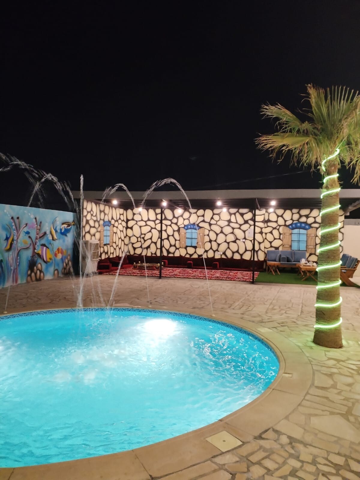 Chalet Al Saraya Al Fakher Qassim Buraidah Near the Western Ring Area 600 Composed of a Filtered Pool and Green Flats Wooden Sessions Large Concert Hall High Councils Bedroom King Bed and Other Bedroom Three Beds and Tables Offering Parquet Flooring Pools, Wallpaper We have a guard and a distinctive cook with a symbolic value Vi er beærede over at besøge dig