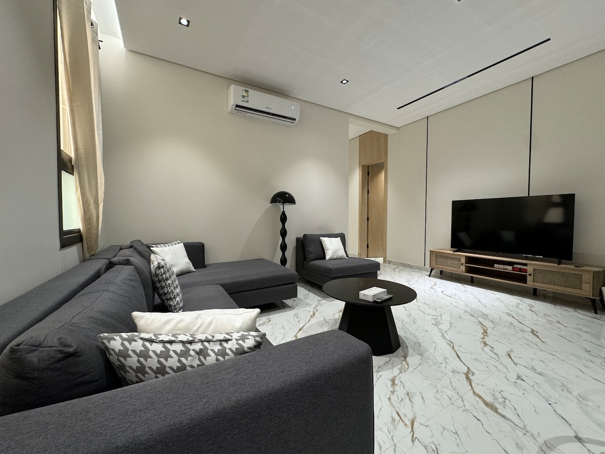 Moderne etværelseslejlighed med fantastisk beliggenhed i Riyadh Denne lejlighed med ét soveværelse er perfekt til solorejsende, par eller forretningsrejsende, der søger komfort og bekvemmelighed. Du er kun få minutter væk fra seværdigheder, caféer og offentlig transport. Funktioner: – En behagelig queensize-seng med friskt sengetøj – Et fuldt udstyret tekøkken til let madlavning - Et moderne badeværelse med toiletartikler - Højhastigheds-wi-fi - Aircondition/varme - 85" smart-tv