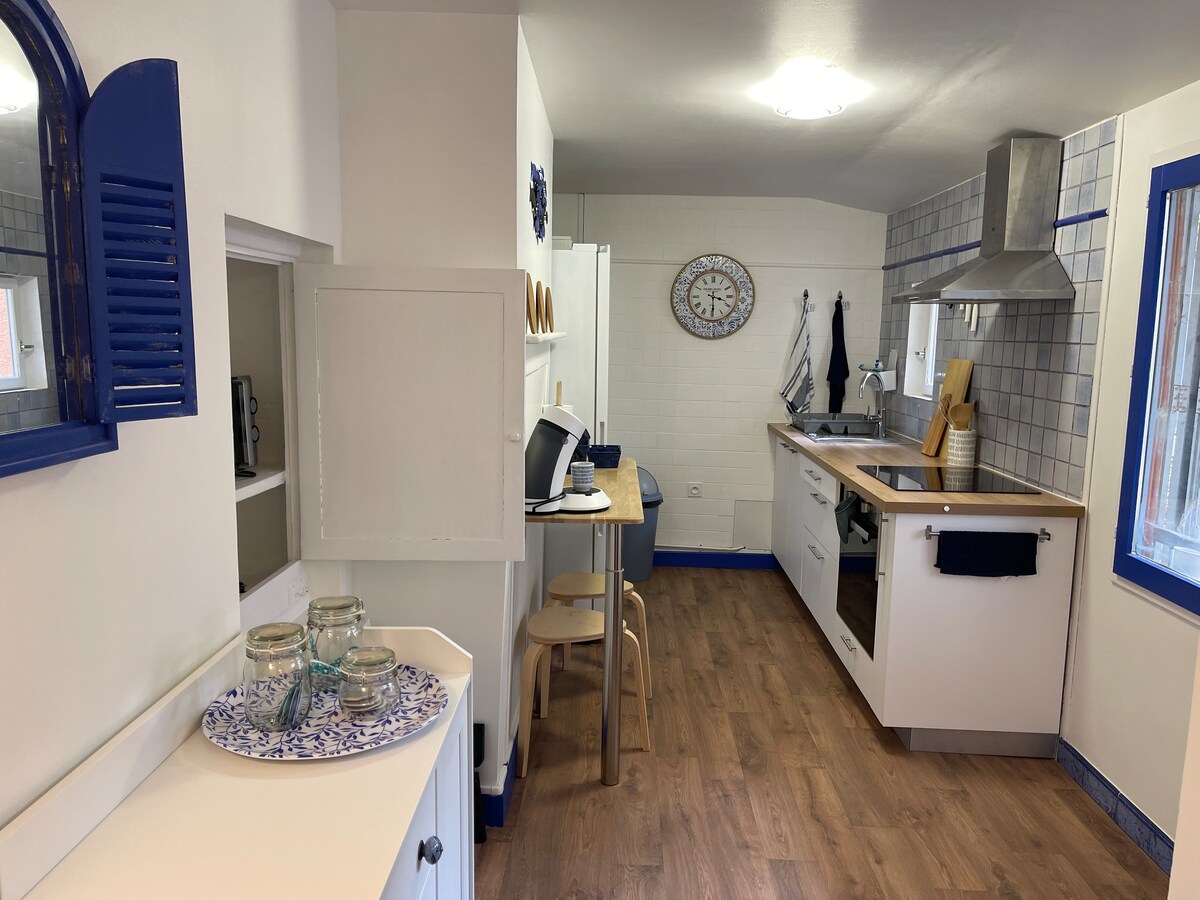 Nyd en stilfuld og central bolig. 5 sovepladser. Rummelig og varm atmosfæreindretning. Alle bekvemmeligheder. Sengetøj af høj kvalitet. Valg af 3 typer puder, valg af dyner. Sengetøj til rådighed. Udstyret køkken (ovn, mikrobølgeovn, induktionskomfur, brødrister, kedel, kaffemaskine). Vaskemaskine og tørretumbler, håndklæder. Tæt på alle butikker til fods (presse, tobak, slagter, bageri, primeur, restaurant, café, frisør, loppemarkeder, tøjbutik)
