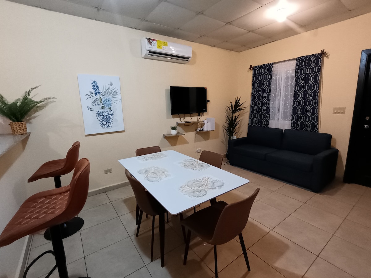 Apartamento de Playa med udendørs terrasse, ligger i Playa la barqueta, kun 40 minutter fra byen David, med udendørs pool, have, ranch ved stranden, hvor du kan lave stege og se solnedgangen, den ligger på første sal uden klatretrin , har aircondition. Der er 2 soveværelser, 2 badeværelser, sengetøj, håndklæder, 3 SmartTV, spiseplads, fuldt udstyret køkken, vaskemaskine og tørretumbler. Pool med børneområde og restauranter i nærheden.