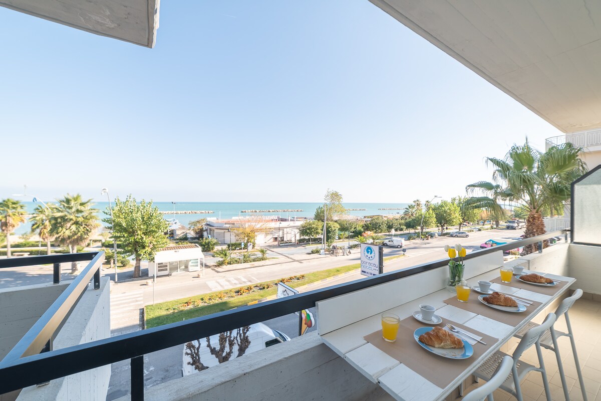 Luksuriøs lejlighed beliggende kun 30 meter fra stranden, anbefales til en ideel belægning på 2 voksne og 2 børn for at sikre maksimal komfort under deres ophold. Indkvarteringen har: - terrasse med havudsigt, møbleret med stue og spisebord; - dobbeltværelse med privat badeværelse, stue med sovesofa (der er ingen skodder i stuen); - 2 smart-tv, wi-fi og aircondition i alle rum, kaffemaskine; – 1 parkeringsplads.