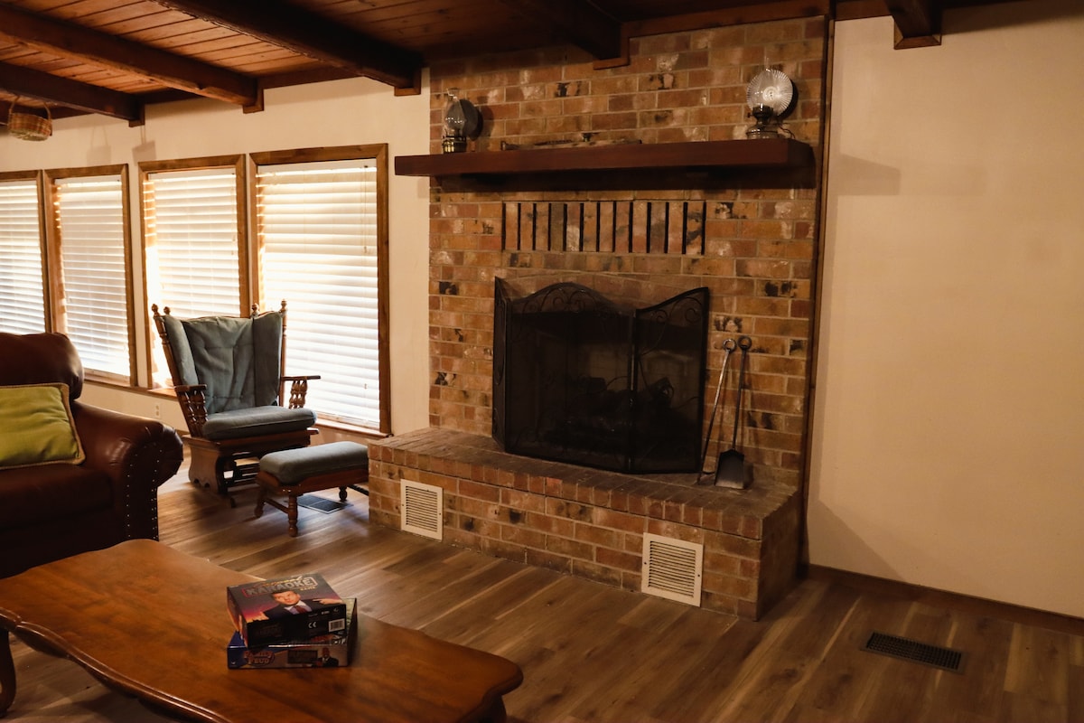 Denne hyggelige landhytte er omgivet af skovområder og har alle de moderne faciliteter, du har brug for. Denne hytte ligger afsondret på 20 hektar ejendom. Nyd aftenen med at grille marshmallows på det udendørs bålsted eller bare slappe af på verandaen og lytte til den vilde kalkun. Perfekt til en weekendtur med din partner eller til at være vært for din næste familiesammenkomst.