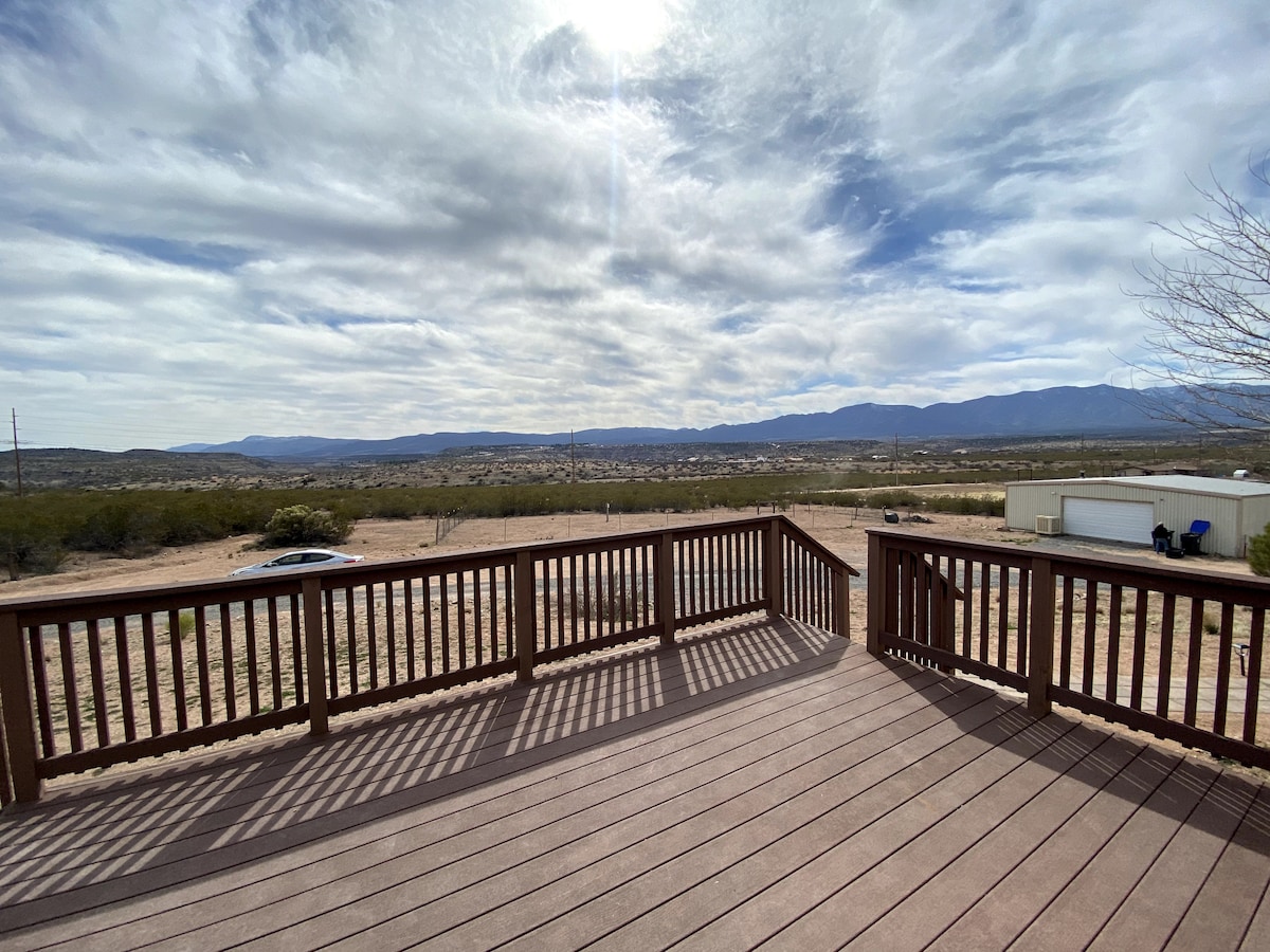 Tag til dit private gæstehus i ørkenen nær Sedona! Dette fristed er perfekt til op til to voksne og to børn og har en fantastisk udsigt over bjergene, en privat baghave med spabad og bålplads og adgang til en pickleball-bane. Nyd et fuldt udstyret køkken, kingsize-seng og et dedikeret arbejdsområde. Pickleballbane kan kun bruges efter aftale. Valgfri facilitet: Gæster kan leje saltvandspoolen i hovedhuset til privat brug, hvis den er tilgængelig under dit ophold.