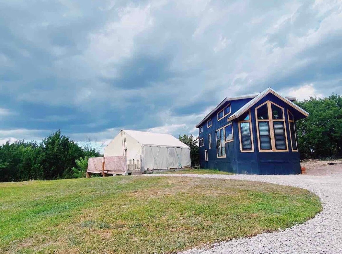 Enjoy the sounds of nature when you stay in this unique and pet friendly Tiny Home! Nestled in the trees and only a couple miles from I-20. Close to city life amenities (20 min from Fort Worth) without the hustle and bustle. Perfect for a getaway, family vacation, quick stay if in town for a wedding or event, romantic trip…come get some R&R at our conveniently located Tiny Home! **The canvas tent has been removed due to severe damage**