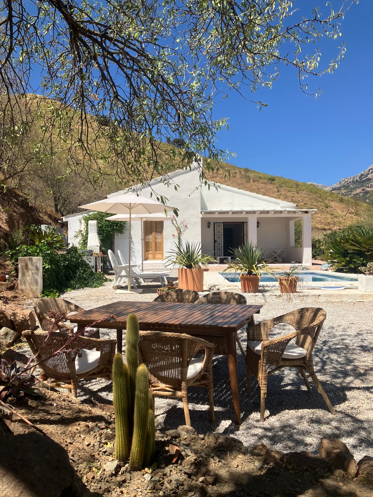 Stille hus på landet i bjergene med åben havudsigt. Solrig terrasse, stilhed og natur overalt. Perfekt til vinterophold: milde temperaturer, masser af lys og smukke solnedgange over Middelhavet. Ideel til par, der ønsker at slappe af, gå ture og nyde Andalusien uden for folkemængderne. Om foråret og sommeren bliver huset et privat tilflugtssted med en stor privat swimmingpool, fuldstændig privatliv og aircondition for maksimal komfort. Nem adgang fra Málaga Lufthavn, men helt fredeligt.