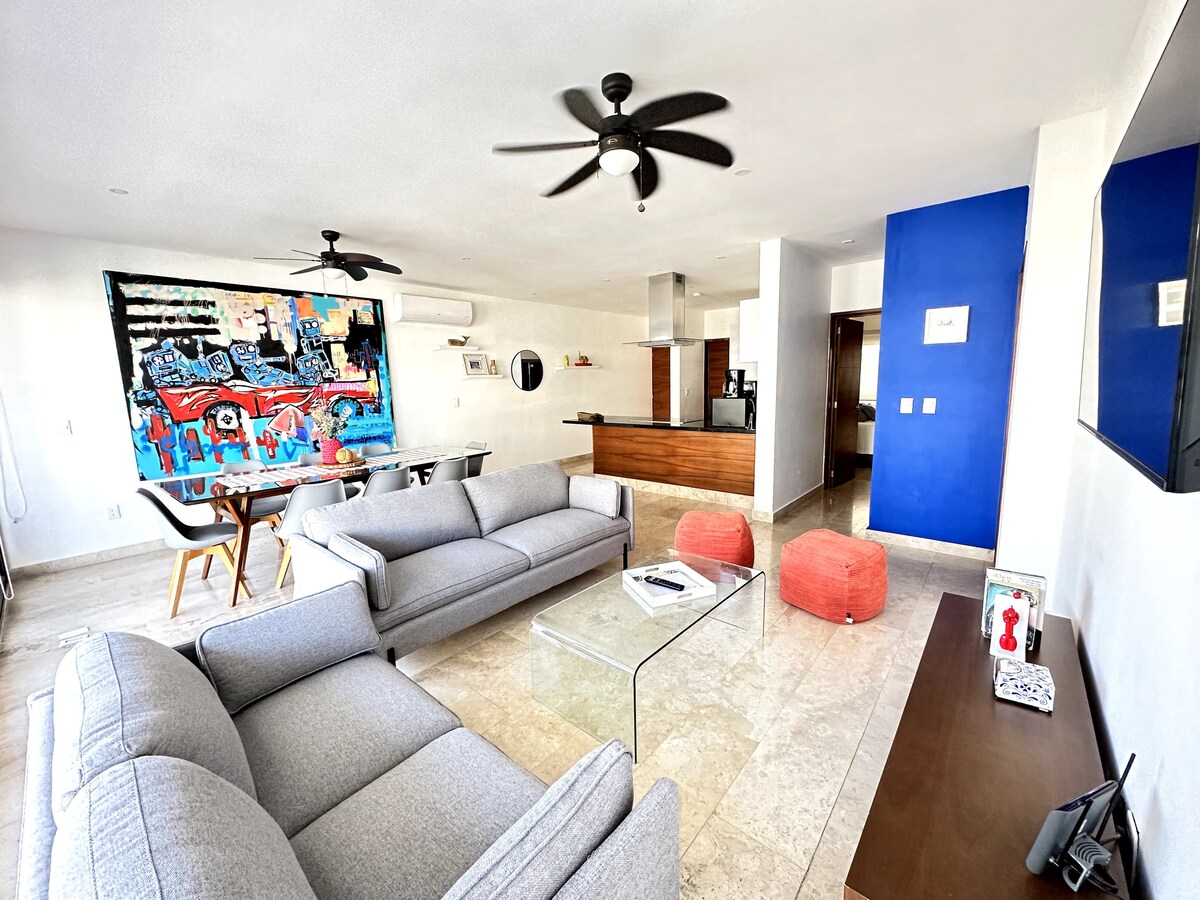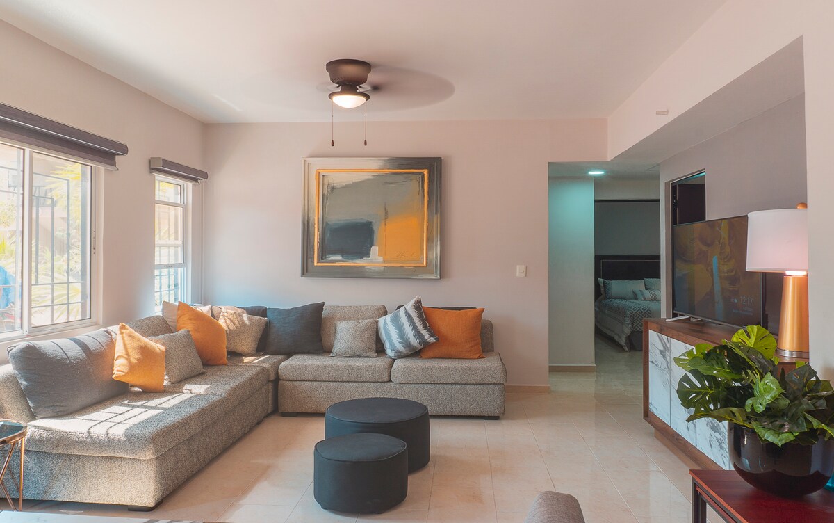 Hyggelig lejlighed beliggende i downtown Cancun, meget sikkert område i nærheden af de fleste turistattraktioner, restauranter, caféer, offentlig transport, supermarkeder og indkøbscentre. Du vil elske lejligheden på grund af den dejlige udsigt over poolen, den ligger 15 minutter i bil fra hotelzonen og de dejlige strande! Det er i en lejlighed med smukke pools, fitnessrum og sikkerhed 24 timer i døgnet. Rummelig og komfortabel lejlighed med 2 soveværelser med 2 private badeværelser, stue, køkken og vaskeri. Du vil være velkommen!
