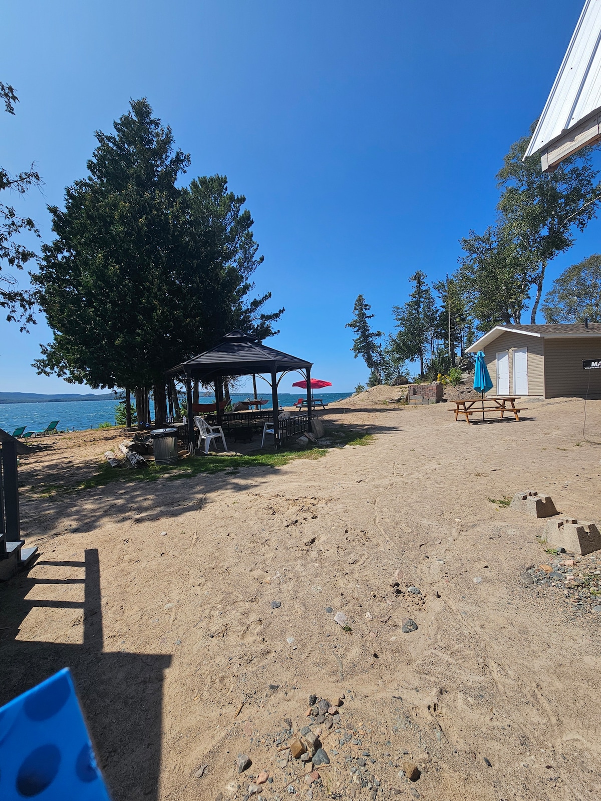 Sunset Paradise ligger ved Lake Superior og er en unik og fængslende destination med en malerisk sandstrand på Havilland Shores Dr., Goulais River Ontario. Denne ekstraordinære beliggenhed og udsigt giver en ideel, rolig flugt for folk, der har lyst til at være tæt på de naturlige skønheder i det nordlige Ontario. Gæsten vil nyde opholdsområdet i bunkien ved vandet, stuen og køkkenet i den tilstødende lejr. Denne beliggenhed har et udendørs badeværelse.