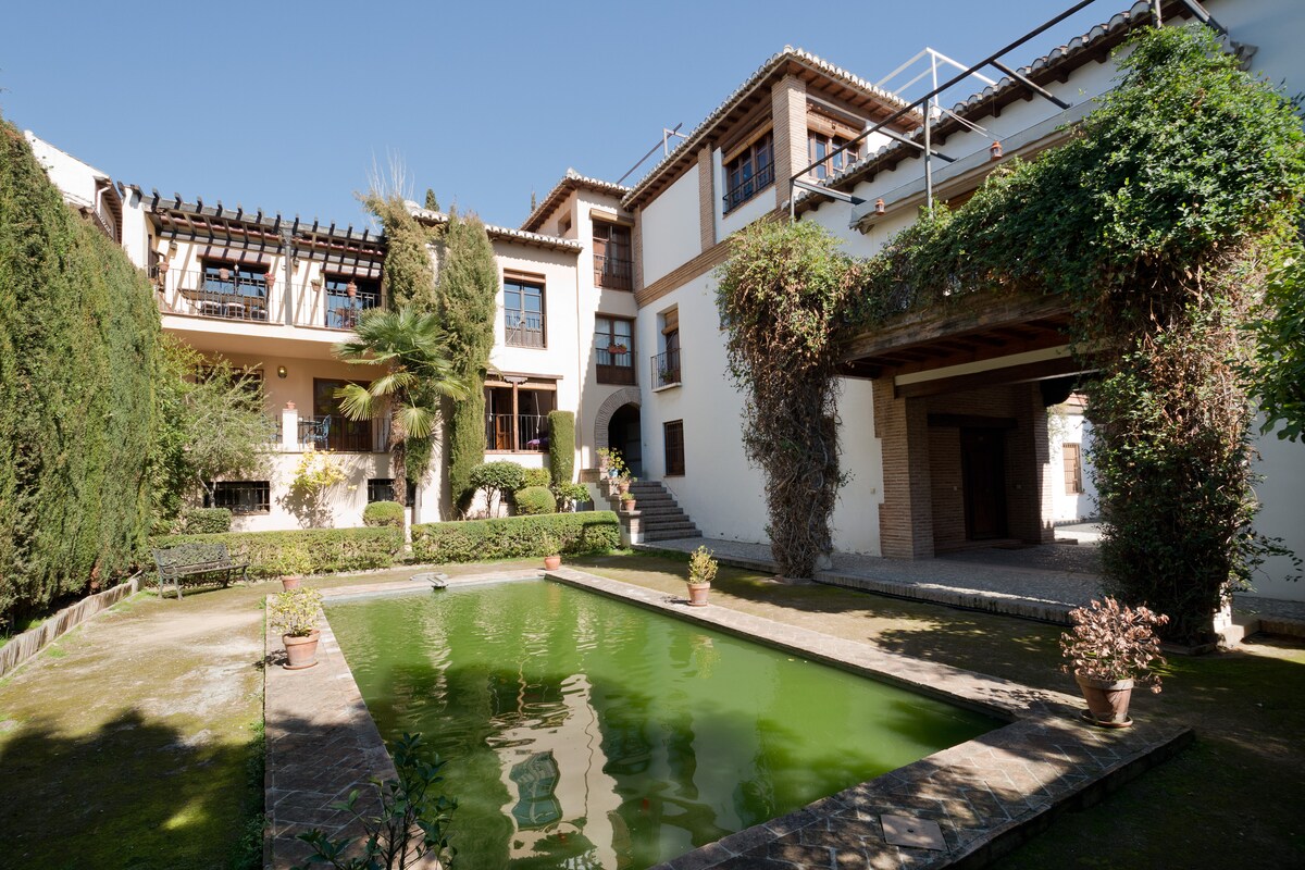 Denne lejlighed er en del af et Carmen, der er klassificeret som værende fra renæssancetiden, hvilket kan ses på dets søjler og træværk. Cármenes var mauriske boliger, der kun fandtes i Albaicín (Granada), og som senere blev rehabiliteret af de kristne. Det er lukkede områder med høje mure, der omgiver haver, springvand og en pool, som danner en forløber til boligens værelser. Rummet er intimt og stille, kun afbrudt af vandets susen.