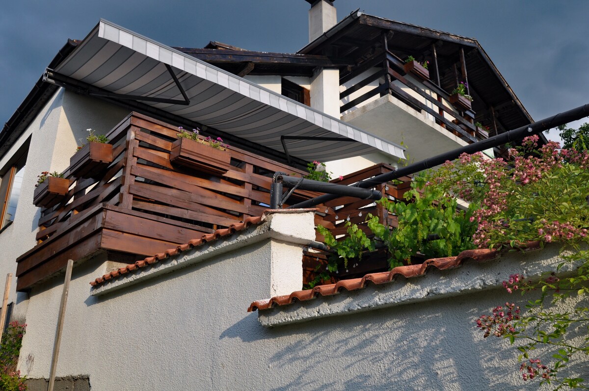 Sapareva Kashta is a modern maisonette that combines the comfort of a modern house with the cosines of a mountain villa with a wooden scent. The Villa itself is very spacious! It provides a well-equipped kitchen, living room with fireplace, lounge area, dining area for 8 people as well as a nice spacious shower/bathroom. The balcony provides a great view of the sunsets, and nice spot to have dinner/wine.