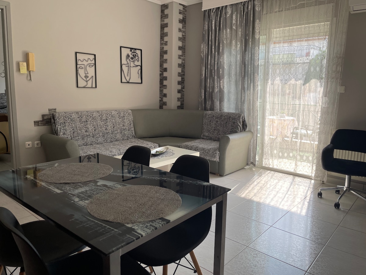 Føl dig hjemme i Serres - en varm og unik oplevelse! Leder du efter mere end blot et ophold? Velkommen til dit hjem i vores smukke område, kun 10 minutters gang fra det livlige centrum af Serres. Vores lejlighed ligger på 4. sal i en seks-etagers bygning og tilbyder gratis parkering, sikkerhedskameraer og elevator. Med hyggelig indretning og alle bekvemmeligheder. Den har et rummeligt badeværelse, et fuldt funktionelt køkken, en behagelig dobbeltseng og en komfortabel stue.
