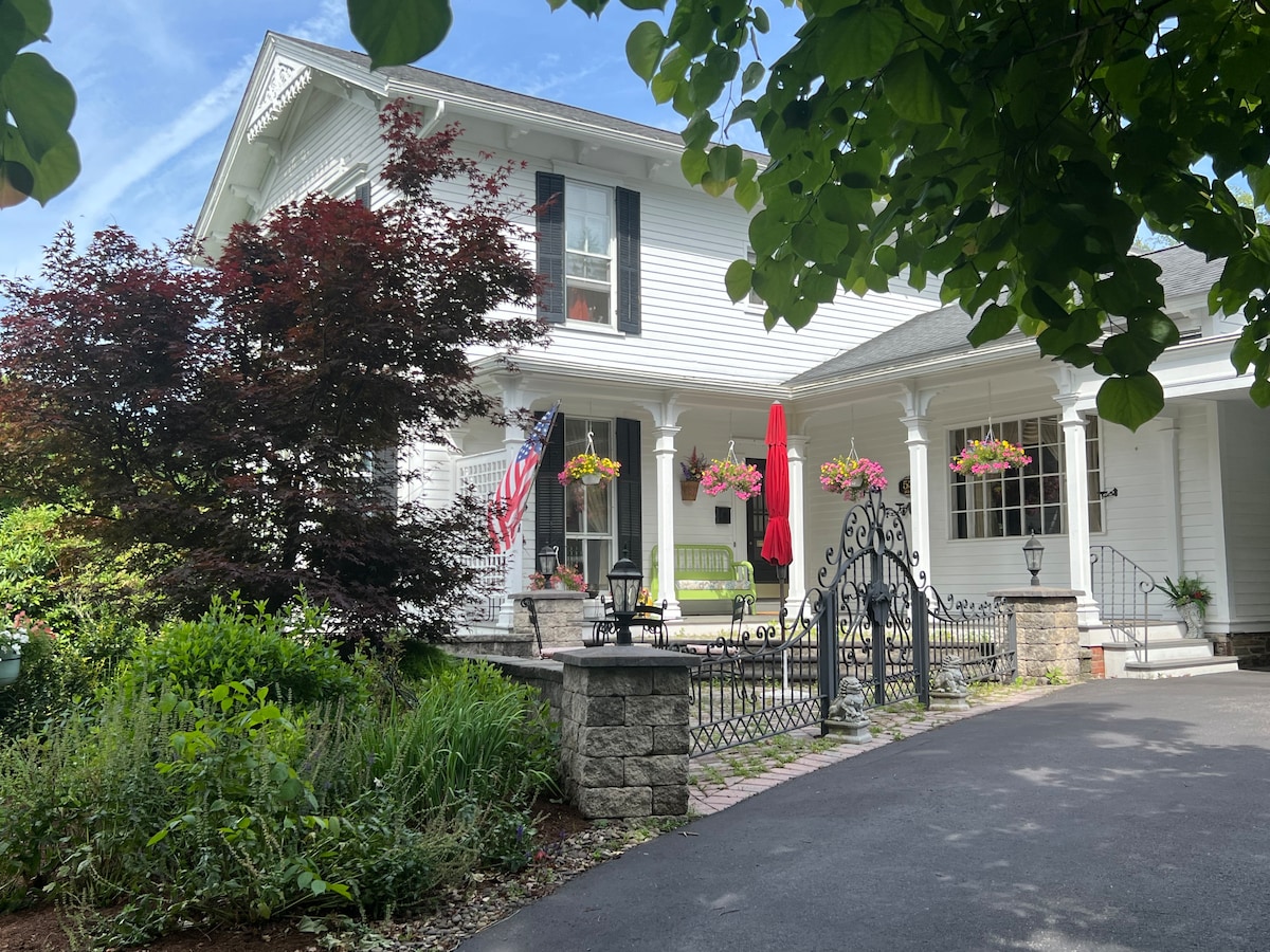 Hvorfor ikke afslutte din dag med et afslappende bad i spabadet, mens du tilbringer natten i et af byens historiske hjem? Dette elegante soveværelse på 2. sal, der er bygget i 1800'erne med mange originale arkitektoniske træk, har en kingsize-dobbeltseng og tilhørende badeværelse. Det originale træværk omkring 3 sydvendte vinduer tilføjer charme til denne bolig. Nyd den nyrenoverede stue og vores ombyggede udendørsområde. Ingen skjulte rengøringsgebyrer! Nem adgang fra PA Turnpike