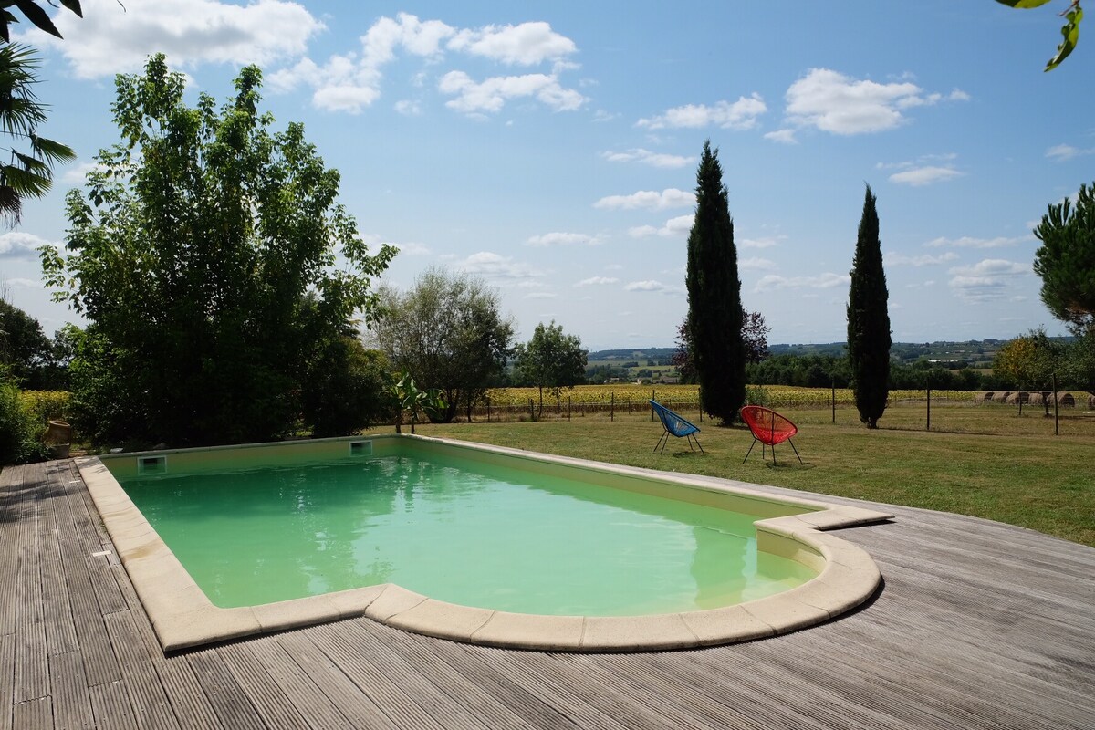 Elsker du natur, sten og ro?🌿 Så er du kommet til det rette sted! Kom og få tanket op med zen på landet 🌼 Du vil elske at opdage den gastronomi, der gør det sydvestlige Frankrig berømt, såvel som den søde livsstil i Lot-et-Garonne! 90 m2 bolig indrettet med omhu ved siden af vores hus. Gammel charme. 💛 💦 Saltvandspool 8,50 m x 4,30 m. Landskabspleje i gang for 2025💦 se flere oplysninger i beskrivelsen Engelsk tales