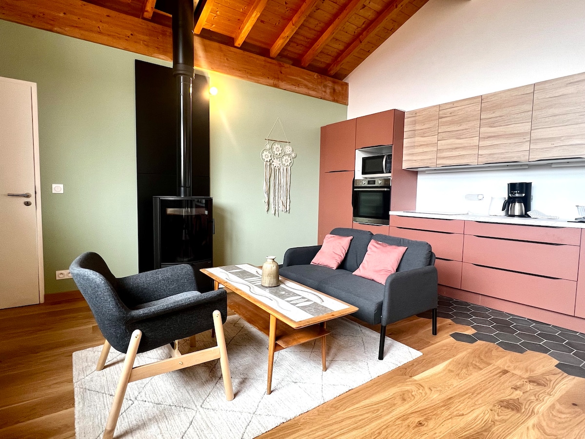 Completely new apartment on the first floor of a character house. Superb view of the Belledonne massif. Cathedral living room with exposed beams and open kitchen. A wood stove will warm up your evenings. Located in a small village a few kilometers from the spa town of Allevard les Bains and 20 minutes from the Collet ski resort. Ideal for enjoying nature in a calm and natural environment.