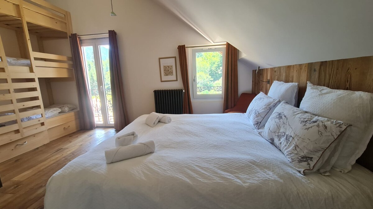 Dette charmerende værelse med bjergudsigt er udstyret med en dobbeltseng 160 x 200 eller 2 enkeltsenge 80 x 200 og en køjeseng til 2 børn (specialfremstillet i chartreuse-træ) Lad dig selv transporteres til en bjergatmosfære, varm og intim på Domaine de Rozan-hotellet. Miljøvenlige materialer, indretning og komforten af eksklusivt sengetøj vil gøre dit ophold et øjebliks roligt og enestående.