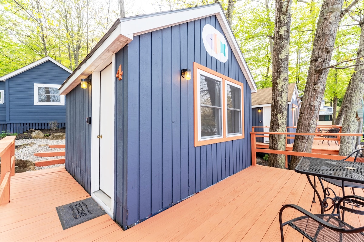 Hyggelig 1-værelses hytte med udsigt over Lake Winnipesaukee tilgængelig året rundt. Vores terrasse ligger bogstaveligt talt på Lake Winnipesaukee og 3 minutters gang fra hytten. Her kan du nyde en smuk udsigt, deltage i søaktiviteter såsom svømning ud for vores kaj, bruge vores kajakker, dykkerbræt osv. Den offentlige strand ligger få skridt væk, sammen med restauranter, is, vandsportsudlejning, minigolf og underholdning. Perfekt til par eller lille familie og er kæledyrsvenlig. Hytten har varme og aircondition.
