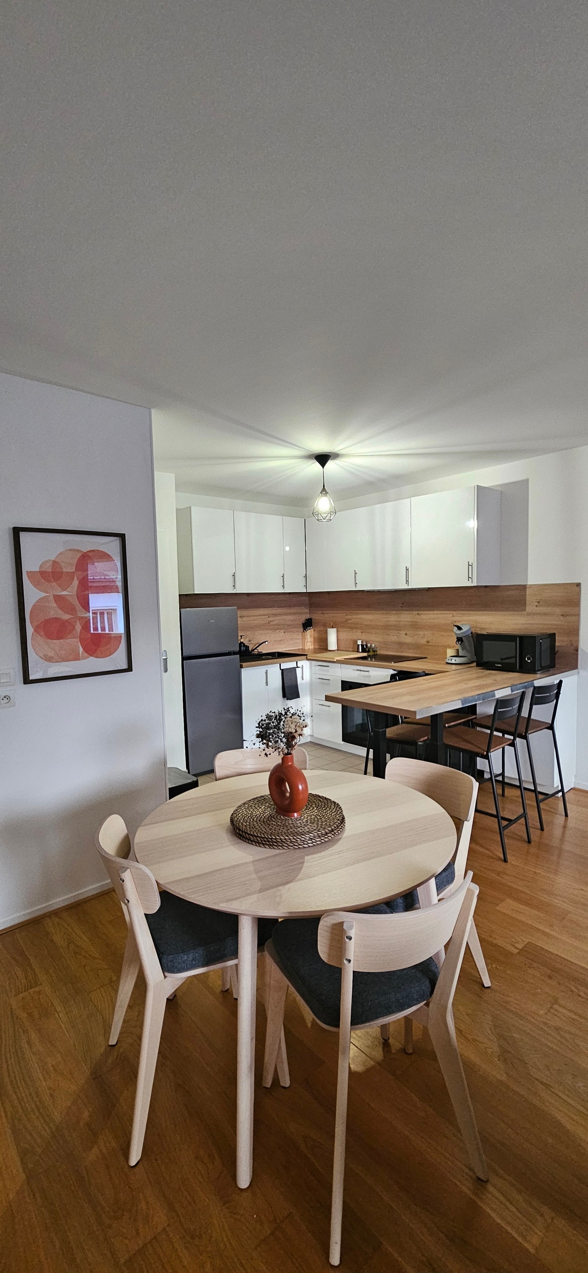 Vi byder dig velkommen i vores hyggelige lejlighed på 3. og øverste etage. Den er for nylig blevet renoveret og indrettet med omhu, og vil være dit udgangspunkt for at opdage vores smukke by. Lejligheden ligger i byens centrum, et ideelt sted at udforske de historiske og kulturelle skatte til fods! Nyd Notre-Dame d'Amiens-katedralen, sejl gennem de berømte Hortillonnages, følg i Jules Vernes fodspor, smag på en vaffel på julemarkedet... Velkommen til Amiens!