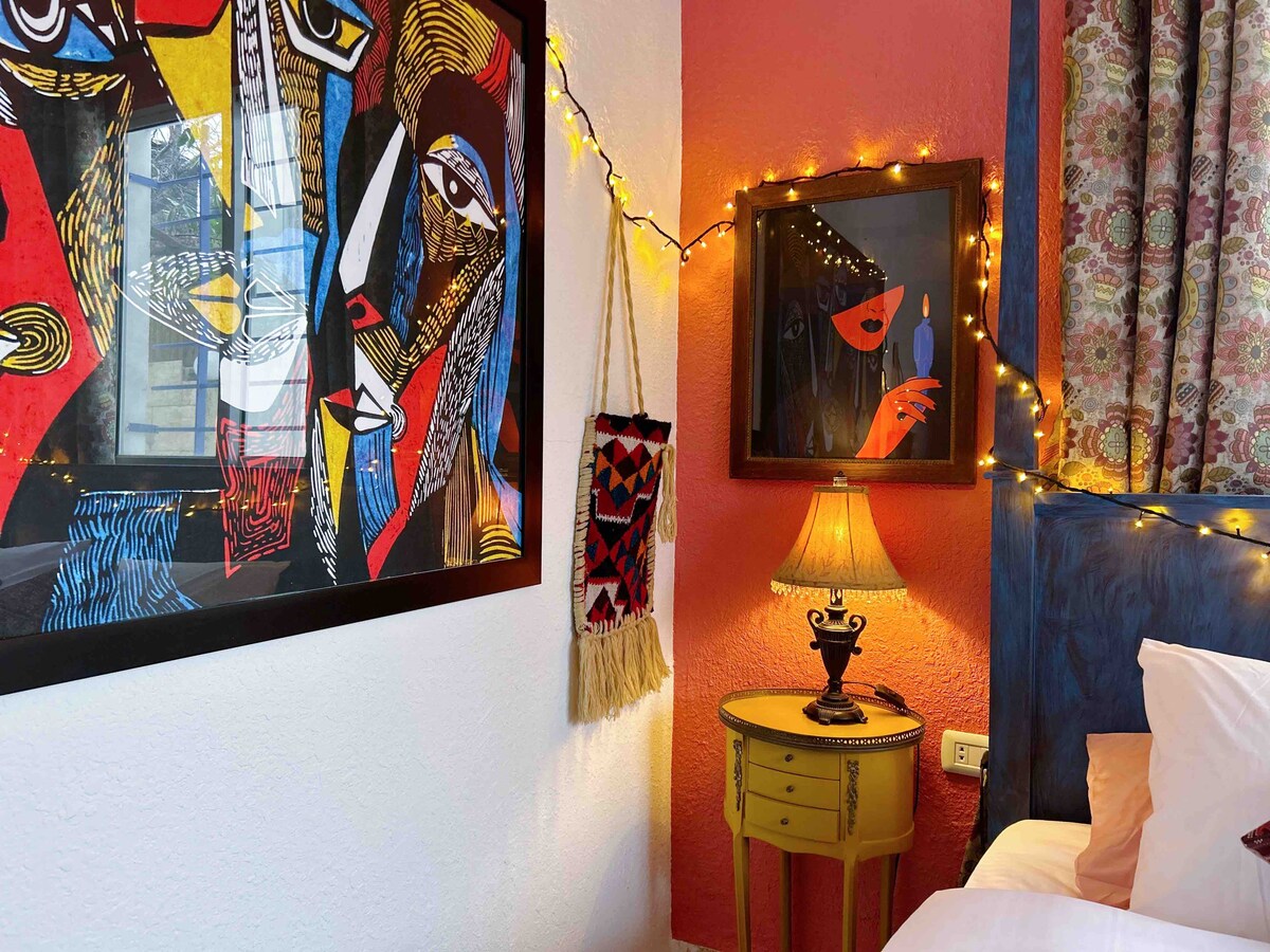 Slap af i denne solbeskinnede lejlighed, et perfekt sted for to. Nyd en komfortabel indkvartering og en fantastisk udsigt over det historiske Amman. Beliggende i et fredeligt kvarter og i gåafstand fra Jabal Lwebdehs caféer og restauranter. Slip kreativiteten løs ved at male på et lærred, eller find din zen med en yogasession på måtten udenfor.