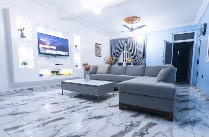 Enjoy a relaxing stay in this spacious three-bedroom apartment in Asenua Kumasi. Perfect for families or small groups, it offers comfort and privacy. The home features a cozy living room, a fully equipped kitchen, and comfortable bedrooms with fresh linens and air conditioning. Free Wi-Fi, and parking. Whether you’re visiting for family time, business, or sightseeing, this apartment gives you the comfort of home with a touch of Kumasi charm.