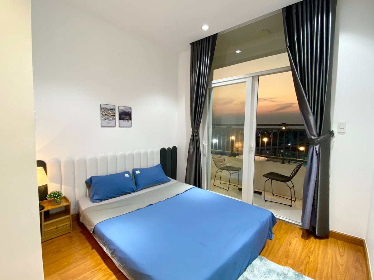 Thư giãn cùng cả gia đình tại nơi ở yên bình này. Căn hộ 2 ngủ với đầy đủ tiện ích cách bãi biển 300m đi bộ ,gần khu vực chợ đêm ,cầu hôn ,cáp treo Được hưởng toàn bộ tiện ích từ phòng gym,khu vui chơi trẻ em,bể bơi tầng 20