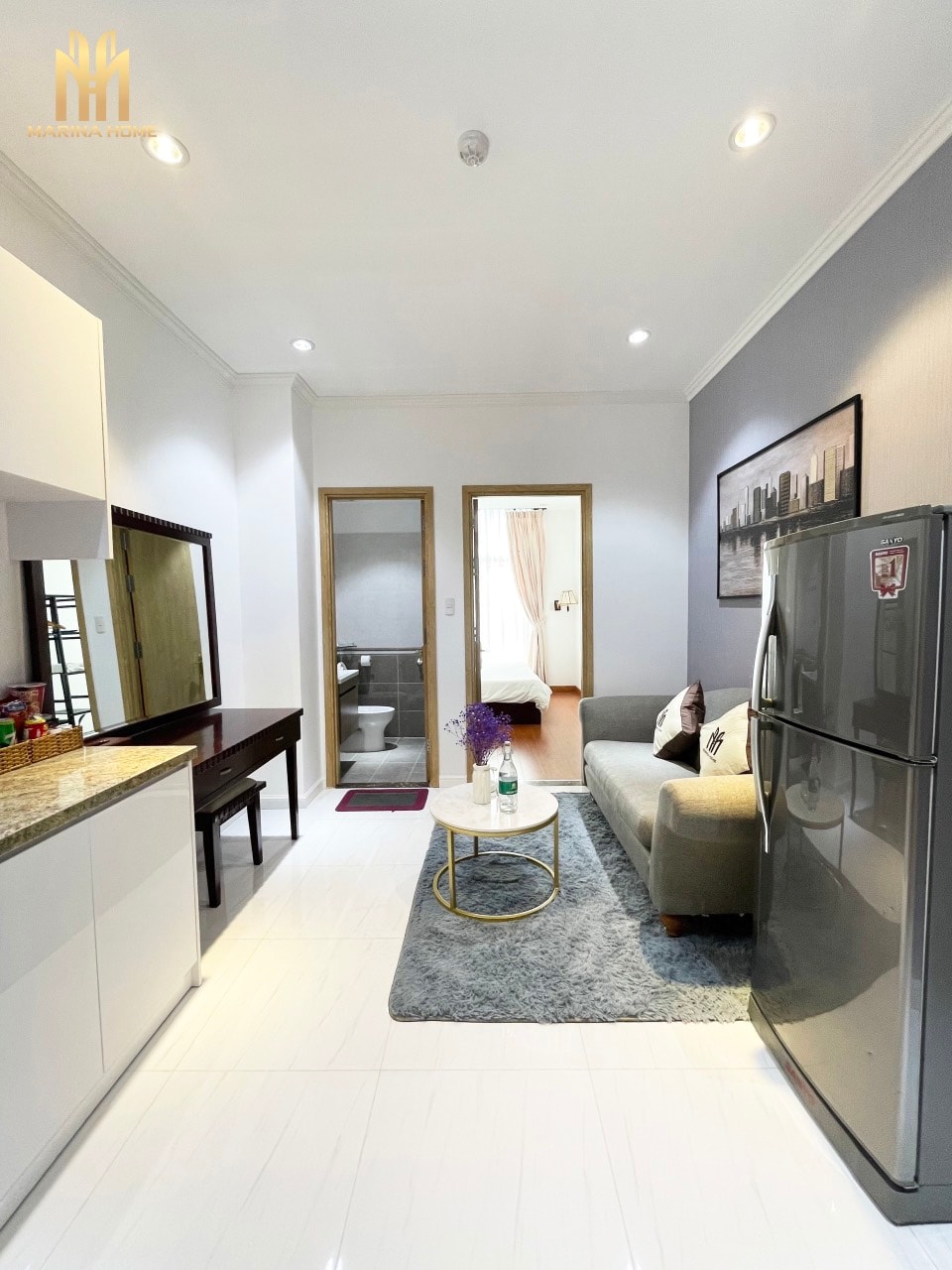 High-class apartment with beautiful view in the center of Long Xuyen city. - Near local markets and supermarkets: Coop, Vincom, Mega, Walking Street, Night Market, church, university. - 32m2 with bedroom, toilet, living room fully equipped with modern furniture: flat screen TV, refrigerator, Sofa, electromagnetic stove, washing machine, air condition, water heater… You just bring your suitcase.