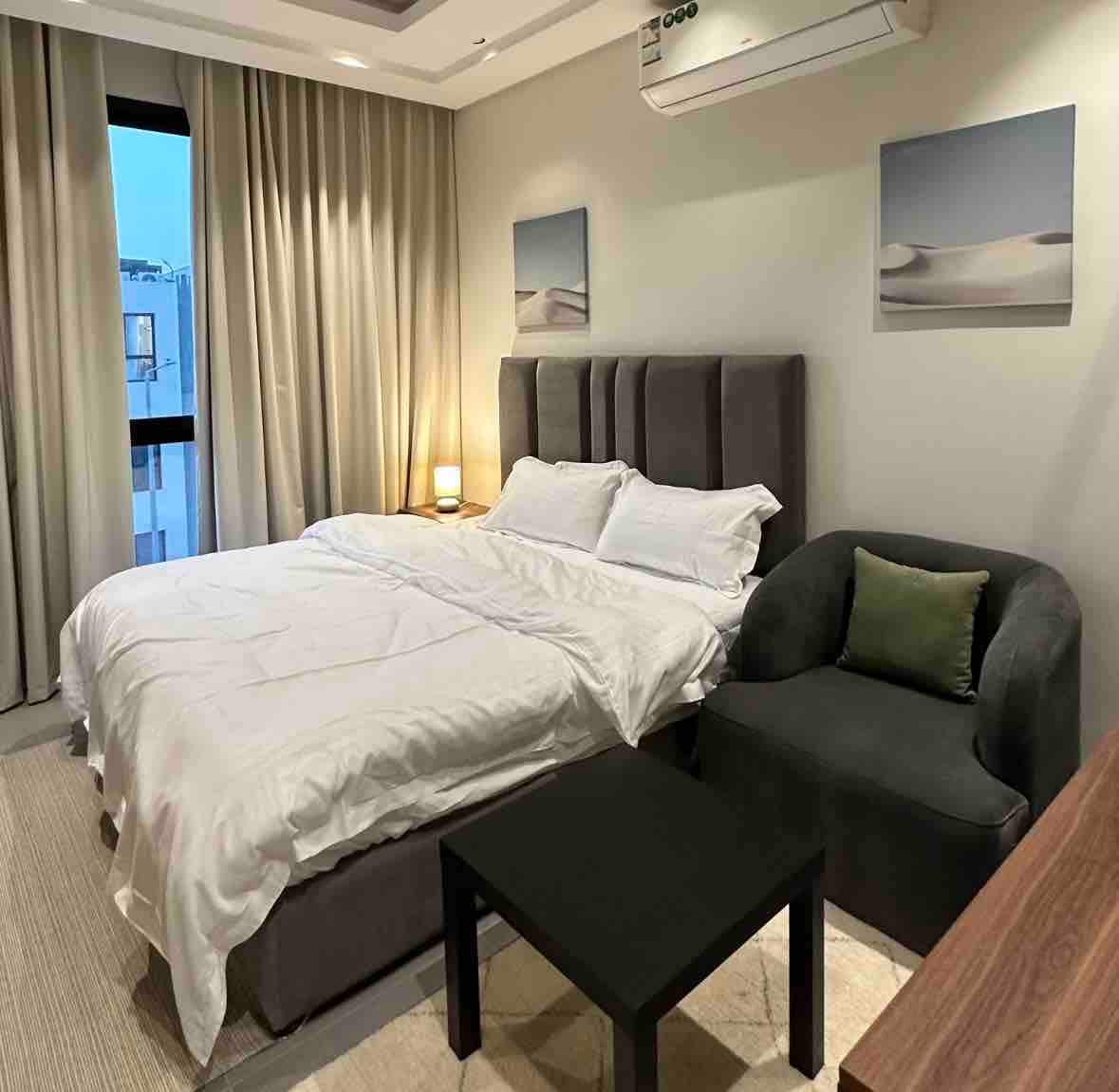 En luksuriøs ✨ etværelses lejlighed med et sofistikeret hoteldesign i den nordlige by Riyadh, der giver en følelse af ro og privatliv i stilfulde og komfortable omgivelser med smart indgang uden vært, der giver dig nem adgang og fuldstændig komfort. Udstyret med luksusmøbler, karakteristisk kaffe og gæstfrihed, med høje standarder for hotelrengøring. Med alle dine daglige forsyninger af bind, luftfrisker, gel, shampoo og Sleeper for en komplet oplevelse i alle detaljer. Beliggenheden ligger tæt på caféer, restauranter og vigtige tjenester, så du kan opleve luksuriøse øjeblikke med en behagelig og elegant karakter. 🌿