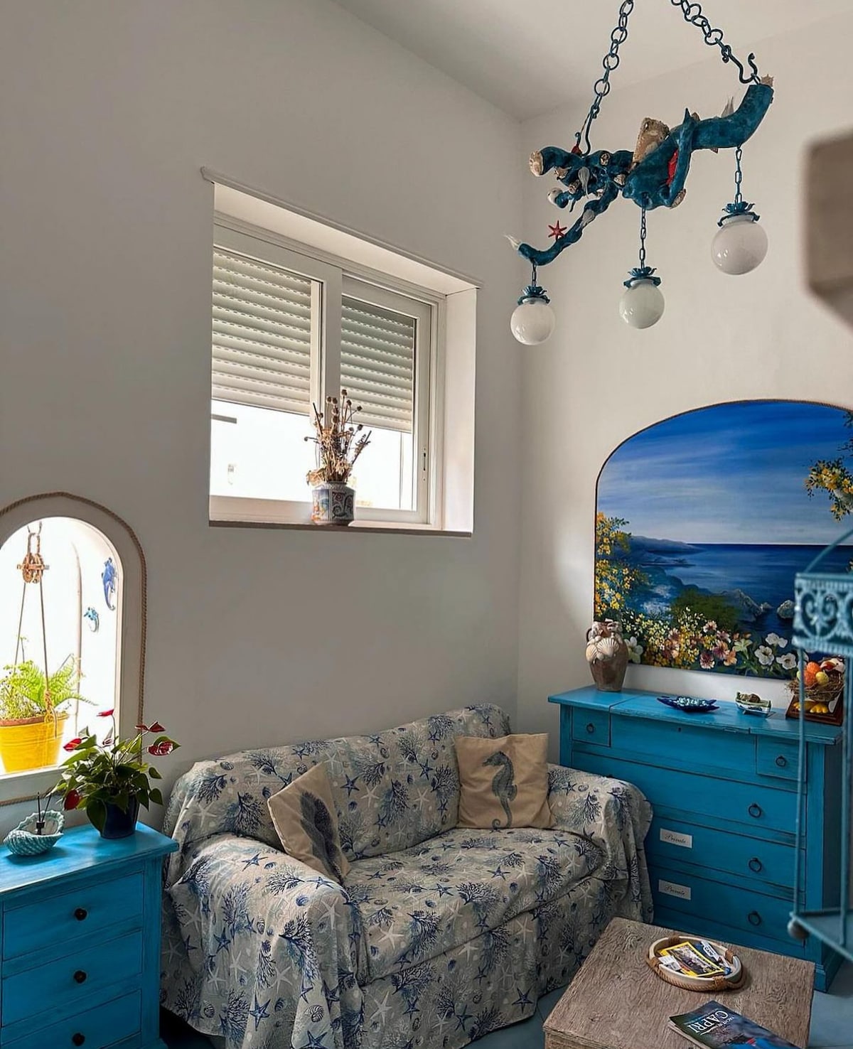 Huset blev renoveret for ikke så længe siden og ligger i den historiske Eden Paradiso-bygning, i centrum 100 meter fra Anacapri-pladsen. Meget lyst og middelhavsagtigt, perfekt til par eller familier med op til to børn. Det har et dobbelt soveværelse med eget badeværelse med badekar/bruser og to stol-senge IKEA (LYCKSELE MURBO) i stuen. Der er et andet badeværelse med bruser.