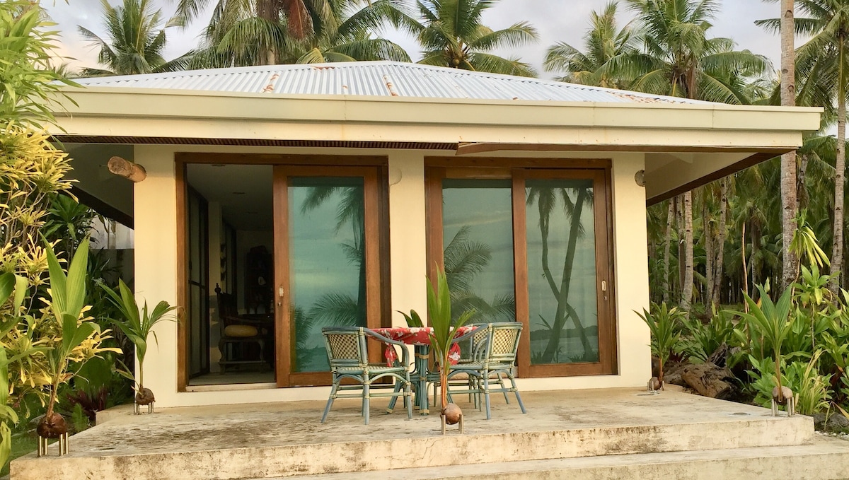 Mit hovedhus, der er designet af arkitekten Ed Calma, har en gæsteafdeling og et separat dobbelt gæstehus. Ejendommen ligger på en 6 hektar stor cocoland på Daku Island lige ved den største surfingby General Luna. Den har en 300 meter strand foran pulveragtigt hvidt sand, der vender mod en lagune af krystalklart vand i forskellige nuancer af blåt. Da man er væk fra den store by og det vilde klientel, er den stolt af sit privatliv og ro, hvor man kan praktisere "kunsten at gøre ingenting".
