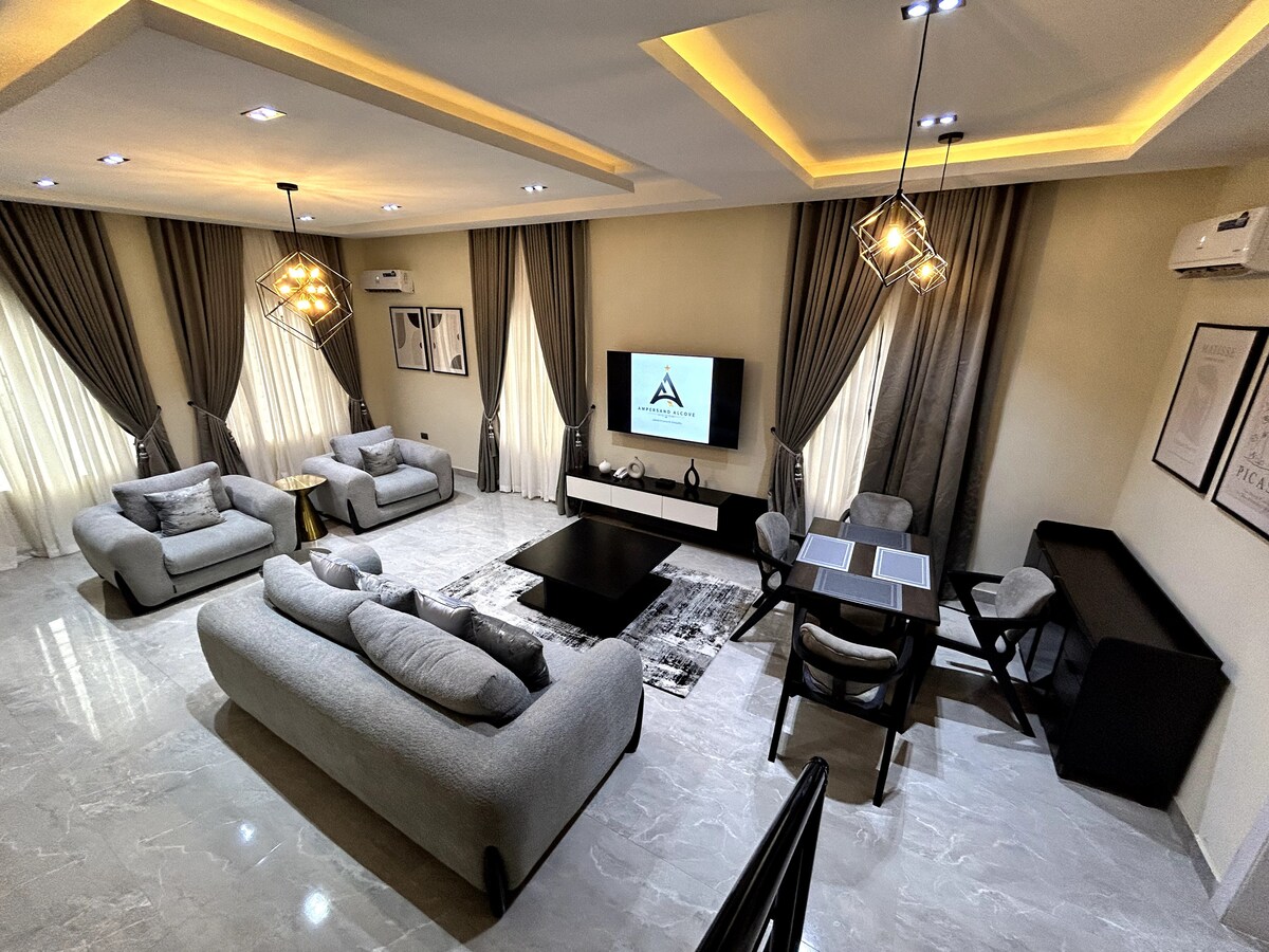 Hvad er din definition af luksus? Ovean Luxury Home is a 2-bedroom 4-stjernet terraced shortlet/lejlighed beliggende på GRUND 2 OVEAN'SBOULEVARD bag stanel world Awka. Vores boliger tilbyder førsteklasses sikkerhed,komfort og luksus, der er specielt designet til at lette gæster ind i byen og ud over det sædvanlige. Vi tilbyder dig en smuk naturudsigt over NAU Octagon twin lake ⛳ golfbane. Hav det sjovt med hele familien i dette stilfulde sted.