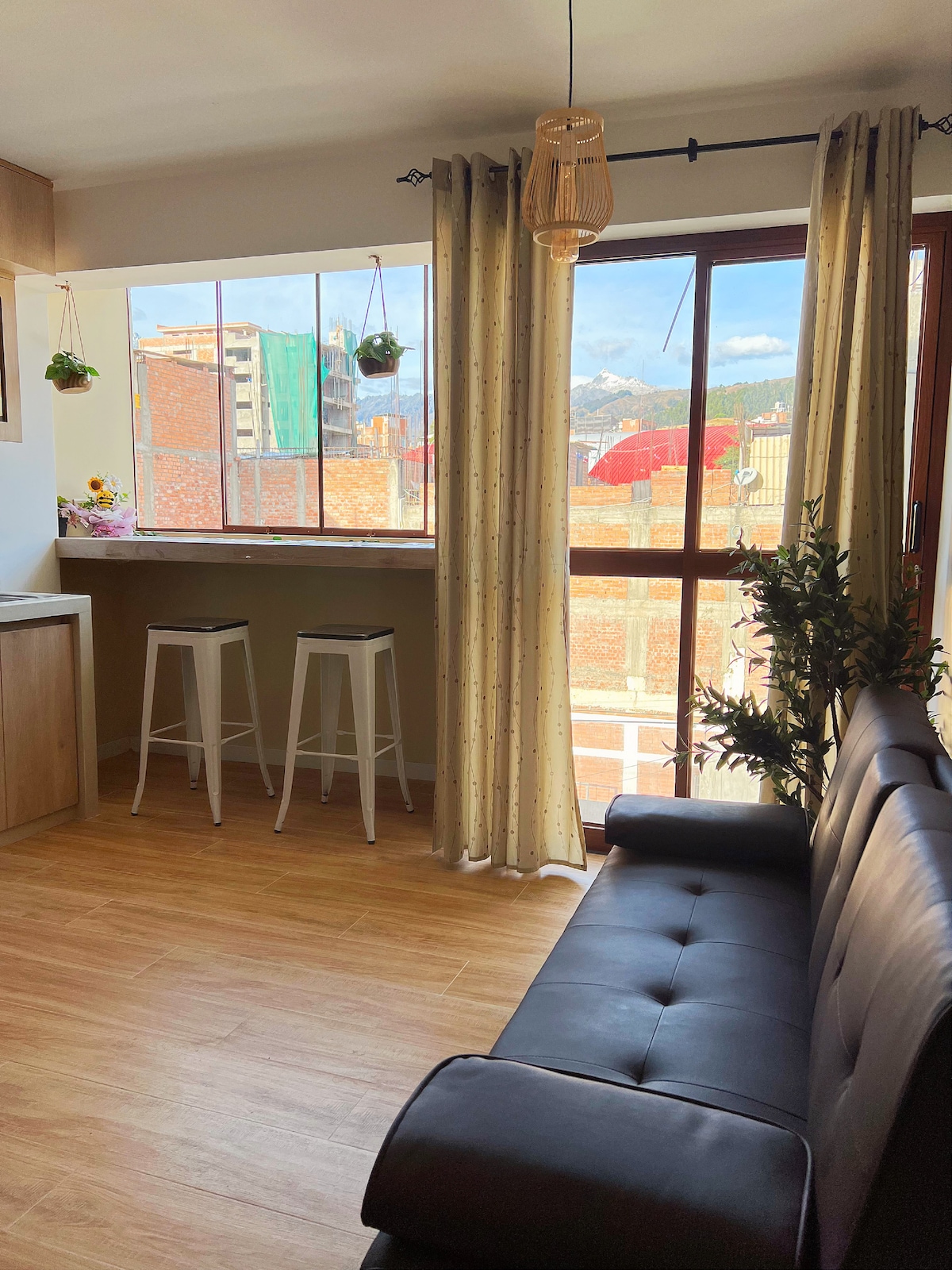 Our apartment is located just a few minutes walk from the Plaza de Armas of Huaraz, in the heart of the city, giving you easy access to the main attractions, restaurants and local stores. The ideal location to enjoy city life and explore Huaraz! Features - Panoramic terrace. - Private garage - Free laundry