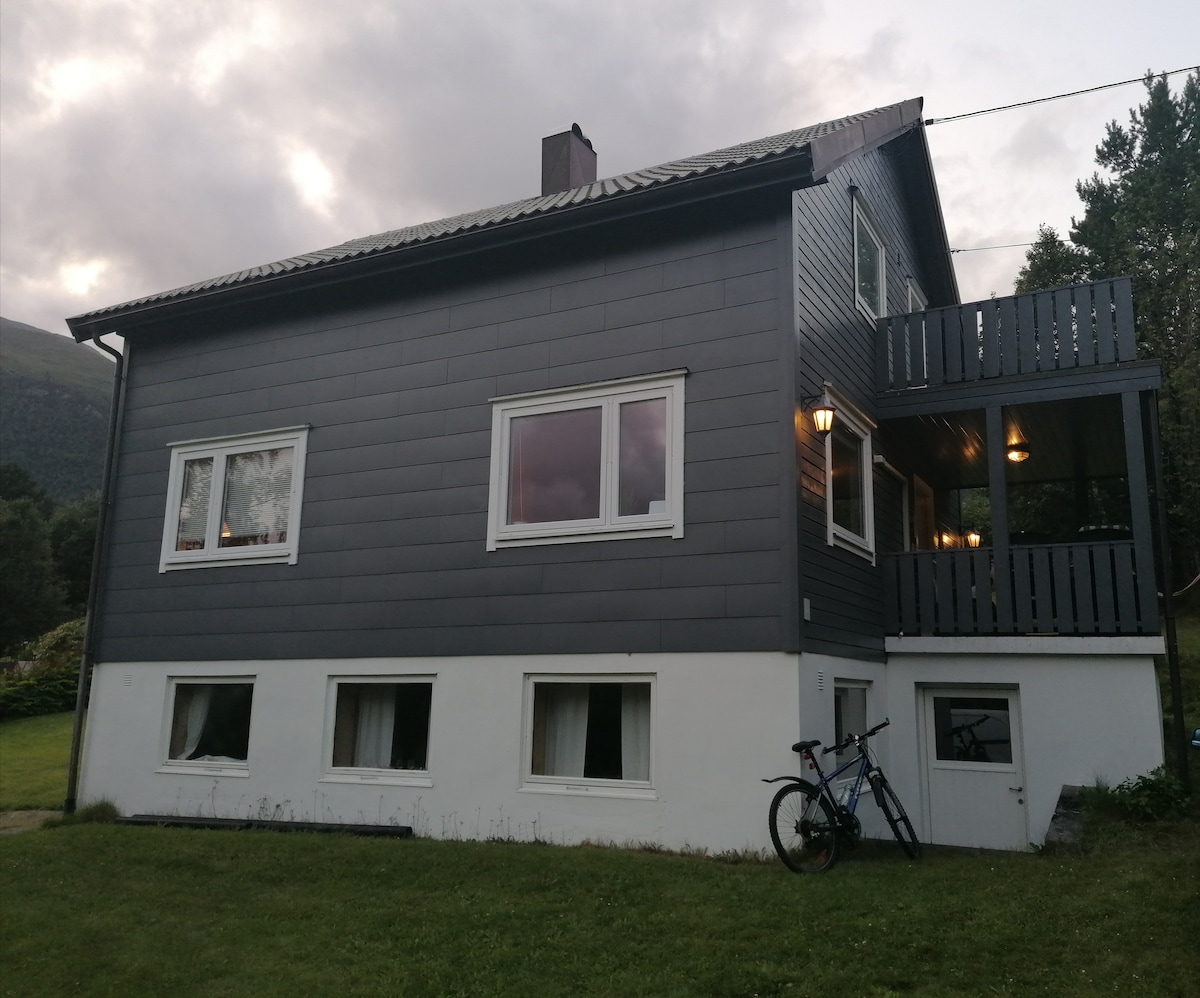Large and cozy wooden house by the Romsdalsfjord. The house is located in Brevika/Isfjorden, ten minutes drive from Åndalsnes centre. Great view to the fjord and the mountains in Romsdal! The house is 200 years old, newly renovated and modernized. All fascilities included. The house has access to the beach within short distance. The closest grocery store is 3 minutes drive.