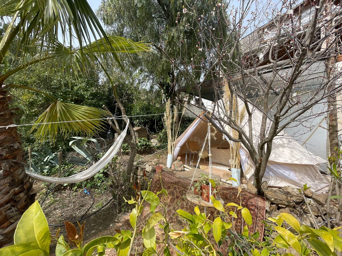 Kom tot rust en stap in dit tent avontuur met een echt bed en klein privé bad. Geniet van de sterren Overdag heerlijk bij het zwembad in de zon. Om de hoek van natuurpark Op 5 tot 10 minuten rijden naar authentieke dorpen waaronder Competa. Malaga 1 uur rijden en de zee een half uur. De tent staat op een eigen etage onder het huis. De badkamer, keuken en grote zwembad zijn gedeeld. Massage & yoga iedere dag mogelijk Vooruit reserveren is aan te raden Ontbijt beschikbaar. Wij koken 2x per week