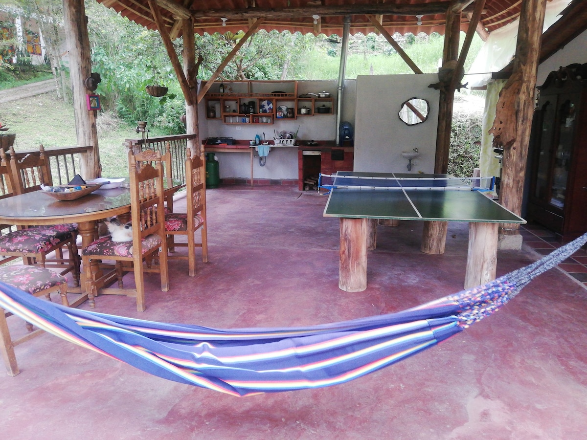 Vores rustikke hytte inviterer dig til en uforglemmelig ferie i Jardín. Vågn op til gyldne solnedgange fra din private balkon, omgivet af kaffeplantager og banantræer. Vandre langs økostier, nyd et privat vandfald, og slap af i brede grønne områder. Med gratis wi-fi er det ideelt for par eller familier, der søger meningsfulde øjeblikke i naturen – kun 11 minutter fra Jardíns centrum, hvor eventyr, frisk luft og fredelige morgener mødes og skaber minder, der varer ved efter dit ophold.