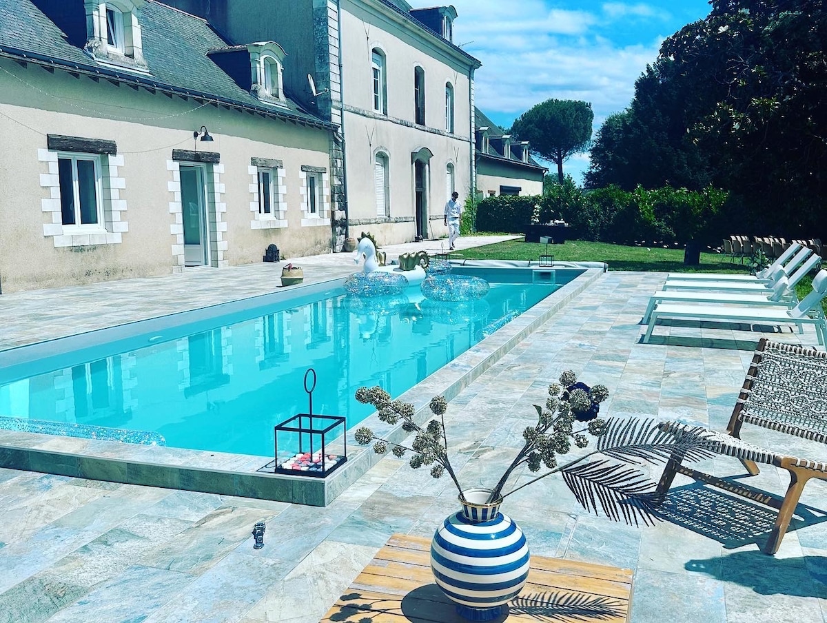 Et stenkast fra Loire og kun 10 minutter fra Angers centrum. Perfekt til familier, venner eller forretningsophold. Rummeligt 250 m² hus med 6 soveværelser, 3 badeværelser og vaskeri. Stor stue med modulære borde, stue med projektor, spilrum med bordfodbold, moderne køkken (amerikansk køleskab, opvaskemaskine...). Anlagt have, cykler, løbehjul og babyudstyr. Loire à Vélo, slotte, vinmarker, zoologiske haver i nærheden. Bus 30 m, togstation 10', A87 2 km.