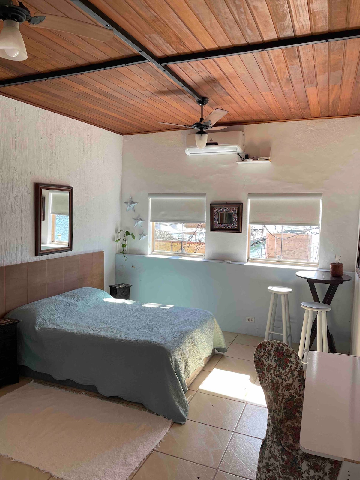 Mit hus, en lille hyggelig lejlighed med havudsigt, tæt på alle butikker, i centrum af byen. Til nytårsaften vil du kunne se fyrværkeriet fra vinduet. Jeg bor i dette hus, så det er udstyret med alle køkkenredskaber undtagen mikrobølgeovnen. Men der er en elektrisk ovn. Jeg har frescobol og en vandtæt taske. Vi er i centrum, 1 minut fra kajen. Nem adgang. Vi har også et elektrisk varmtvandsbrusebad, simpelt, det er ikke et superbrusebad, godt!